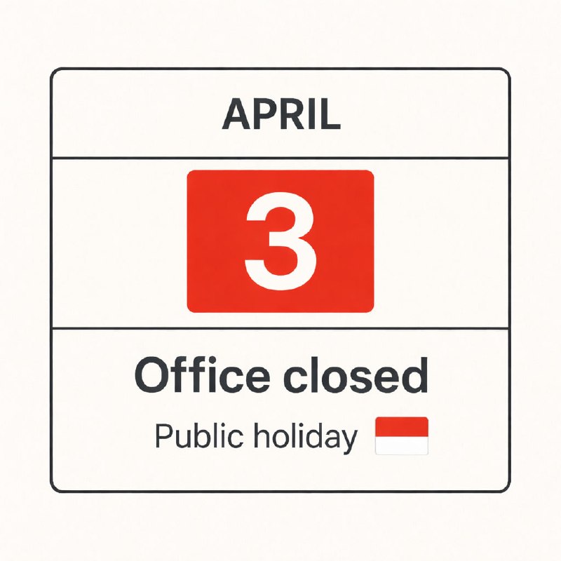 Nous vous informons que le 3 avril est un jour férié officiel en Indonésie.